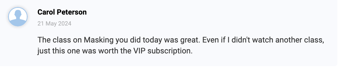 VIP Pass holders receive unlimited lifetime access to watch and rewatch the class recordings, along with extras such as instructor-provided class notes and bonuses such as additional videos, cheat sheets, presets and more. You'll log in to an exclusive VIP Member area where you can watch all the classes and download the bonuses.