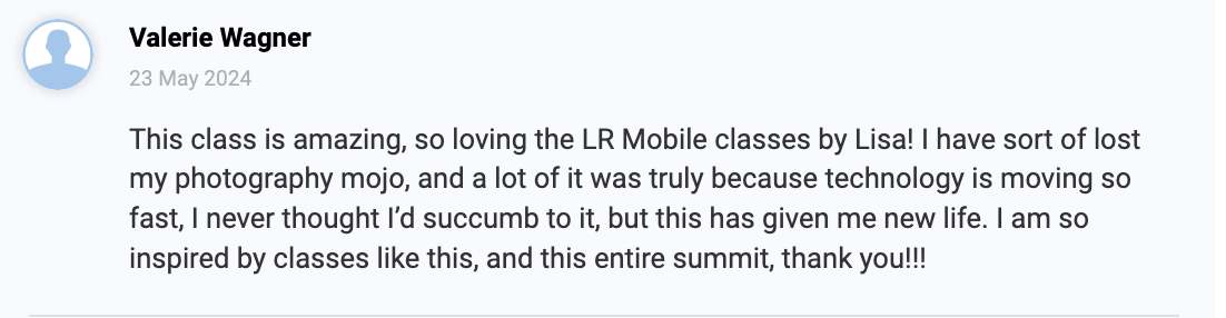 Give yourself the benefit of unlimited, anytime lifetime viewing of the Lightroom Virtual Summit 2024 classes with a VIP Pass.